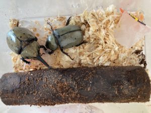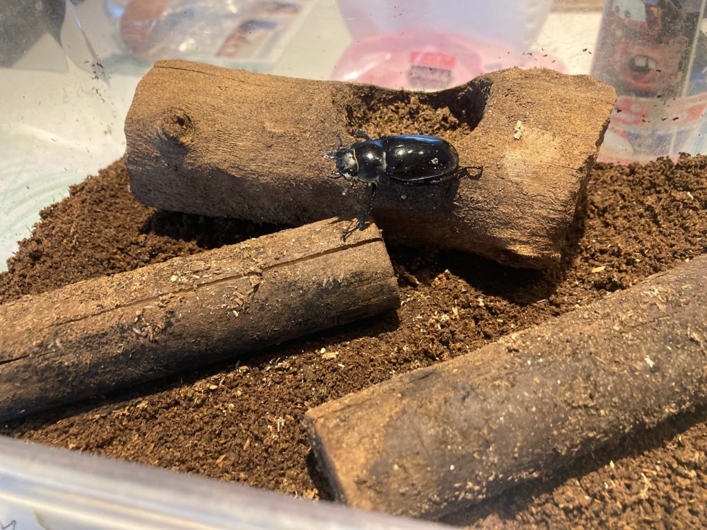 ツヤクワガタの幼虫は土の中に独特の空間を作ってあまり移動せず居食いし続ける感じが強いです。ですので容器を大きくする際は新しい容器の中に元の容器の中身すべてを優しく移し、その周りに新しいマットを入れる感じで極力幼虫の生活環境を変えないように心がけています。
