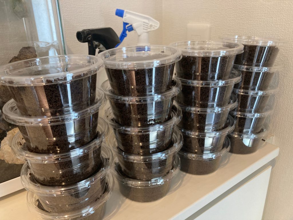採卵した卵の孵化率も非常に高く、ほぼ100%今回は孵化してくれました。幼虫はしばらく400CCのプリンカップで飼育してその後900のカップで行こうと思います、大きい幼虫だけは1400のボトルで管理する予定です。ちなみに幼虫飼育に使用しているマットはこのカブトマットです。黒土感が強くて良い感じ~