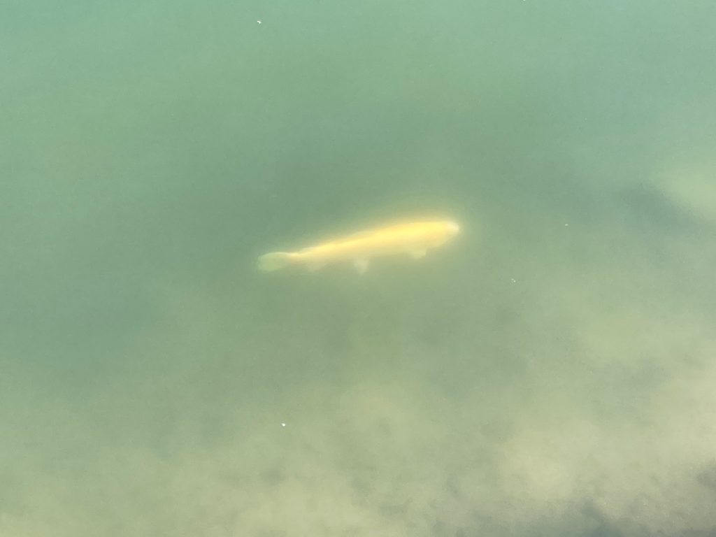 周りも見ても苦戦しているようで釣れてる気配無し?いつもはもう少し浮いてる魚が見える気がするけど今日はほとんど見えないので魚はきっと深い所にいるはずとディープ狙いに絞ります・・・