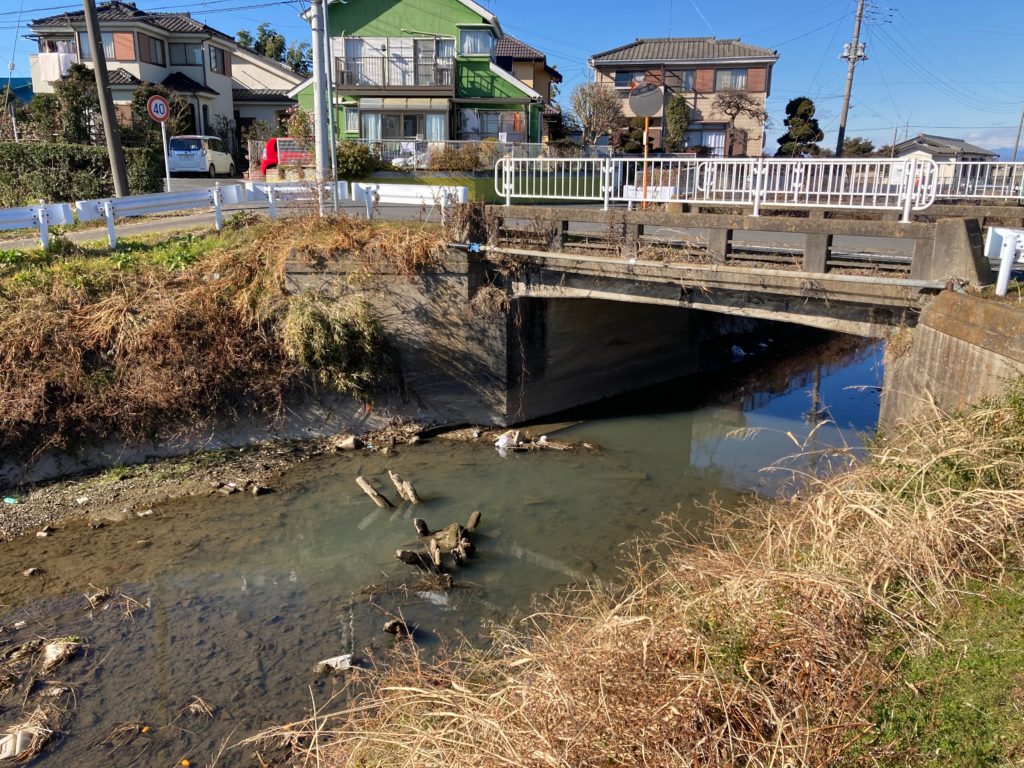 橋下の杭にそって川筋がまっすぐ流れているので地形変化を意識してキャストすると良さそうです。